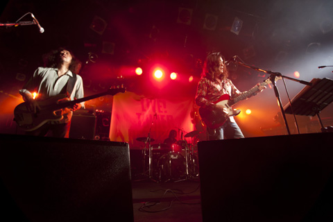 そして大阪、東京と続いた〈夏の便り〉の大トリを飾ったのは、直枝政広と大田譲の2人体制となった現在も、ますますエネルギッシュになったパフォーマンスで多くのファンを惹きつけている大ヴェテランのカーネーション。今回は、ヴォーカル/ギターの直枝、ベースの大田に、彼らの近年のライヴには欠かせない存在であるドラムスの張替智広(HALIFANIE、キンモクセイ)、そしてカーネーションには〈夏の便り〉で初参加となった藤井学(キーボード:MaNHATTAN、ex.The Miceteeth)の4人編成で登場。初っ端から現時点での最新作『UTOPIA』のリード・トラック“UTOPIA”でグルーヴィーに弾け、さらにメロウな佳曲“コズミック・シーのランチ・タイム”、レイドバックしたサウンドに直枝のギター・ソロが映える“未来の恋人たち”と、コロムビア時代に発表された夏ムードなナンバーが続く。
