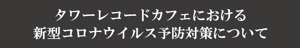 カフェにご来店いただく皆様に安心してお楽しみいただけるよう、タワーレコードカフェでは徹底した感染症予防対策を実施いたします。店舗・従業員の対策やご来店いただく際のお願い、注意点につきましては【 こちらのページ 】をご確認ください。