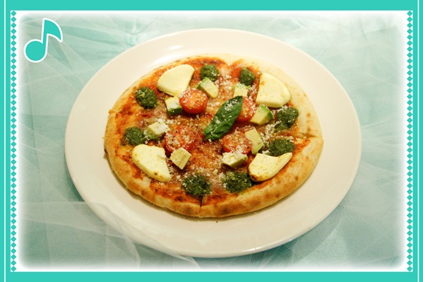 (ピザ生地/ピザソース/プチトマト/アボカド/ジェノバソース/オリーブオイル/モッツァレラチーズ)