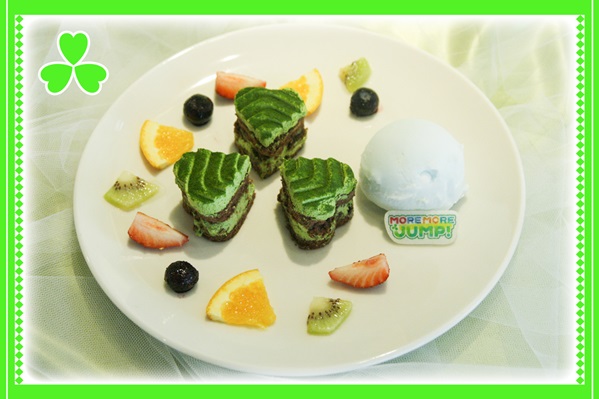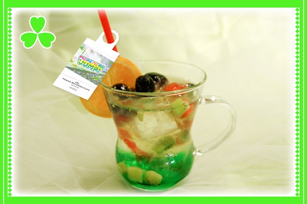 MORE MORE JUMP!らしく黄緑イメージの青りんごのシロップにメンバーカラーのフルーツを入れた希望を届けられるような爽やかなソーダ。