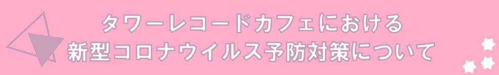 カフェにご来店いただく皆様に安心してお楽しみいただけるよう、タワーレコードカフェでは徹底した感染症予防対策を実施いたします。店舗・従業員の対策やご来店いただく際のお願い、注意点につきましては【 こちらのページ 】をご確認ください。