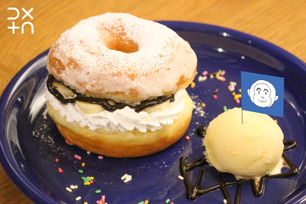 (シュガードーナツ・ホイップクリーム・バナナ・バナナアイス・チョコレートソース・カラースプレー・粉糖)