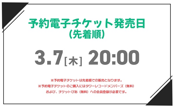 ※電子チケットのご購入には、タワレコメンバーズ会員およびチケットぴあ会員登録が必要です。