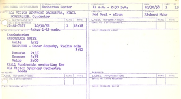 1958年10月29日(3、4)、1958年10月30日(1、2)、ニューヨーク、マンハッタン・センター