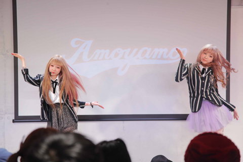 これは先日8月26日に東京・JOL原宿にて開催された夏休みイヴェント最終日にて発表されたもの。この日は、彼女たちの音楽面でのプロデュースを手掛けるthe brilliant greenのヴォーカル、Tommyも姿を現し、AMOYAMOについて「ファッションだけでなく音楽にも変換して行ける世界観をしっかり持っているので、今後も注目していってほしい。このような貴重な機会を持てて、いい思い出になったと思うし、今後も一緒に頑張っていきたい!」と絶賛。さらに、AMOYAMO本人たちの口からメジャー・デビューの決定が報告され、早速その新曲“LET'S GO OUT”を初お披露目して満員の会場を沸かせたとのことだ。AMOYAMOの2人はメジャー進出について以下のように語っている。