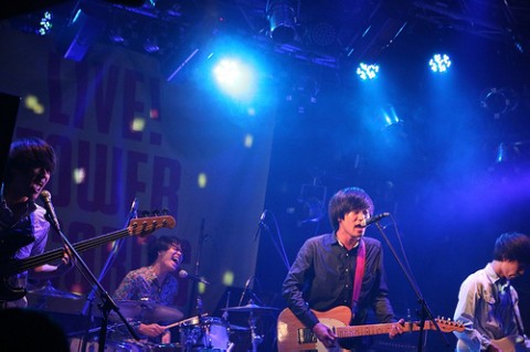 次に現れたのは、タワー主催のオーディション〈Knockin' on TOWER's Door Vol.2〉でグランプリに輝いた4人組ロック・バンド、ザ・ラヂオカセッツ。「〈タワレコメン〉へようこそ! アゲていくんでよろしく!」との宣言通り、冒頭の“東京”からフロントマンの山下秀樹がギター片手にステージ狭しと駆け回ります。続くカントリー調の“古いギター”や、ちょうど金曜日だったこの日にぴったりのアッパーな“フライデー”、山下が「ずっと明けない夜の歌」と語り、浮遊感たっぷりのギター・サウンドでガラッとムード変えた“夜伽”など、色とりどりの楽曲でオーディエンスを魅了します。最後は、すれ違う愛をラヂカセ流に唄い上げた新曲“ラブソング”、そして“ロックンロール”を力いっぱいパフォーマンスし、ライヴ・バンドとしての実力を遺憾なく発揮していました。