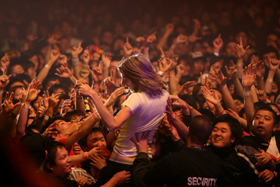 アジカン凄いと思ってたら、グッド・シャーロットはエンターテイナーだった。MC完璧、日本語上手すぎ、ピロピロピロ。海外に行くとグッド・シャーロットのビデオってよくMTVで流れていて、もっとオドロオドロしたバンドかと思っていたけど明るいのでびっくりした。基本的にはトレンチコート・マフィアになるようなアメリカのいじめられっ子が音楽によってポジティヴに立ち上がったというバンドなんだろうけど、あんたら明る過ぎ。でもそこがアメリカでいいんだろうな。彼らのポジティヴさはファンじゃなくてもビシバシ伝わってきた。間違いなくアメリカを代表するロック・バンドの一つだろう。