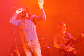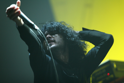 マーズ・ヴォルタが複雑になるのをあざ笑うかのようにカサビアンは〈これがダンス・ミュージックだ、これがロックだ〉とシンプルに攻撃してくる。ほとんどスネアーの音しか聴こえてこない。しかしこれが客を踊らせ、興奮させる。CDで聴こえる音のカオスを、このハードなスネアー音だけが見事に統一させている。エレクトリック・ミュージックの老舗イギリス、歴史のなかから自分たちの答えを見つけているんだろうな。揺れないビートのなか、レジスタンスのようなかっこいいメンバーがクールに暴れる。イギリスでクリスタル・パレス2日間2万人をあっというまにソールド・アウトした訳がよくわかった。