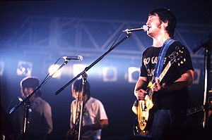 僕が知っている限り、アタマに〈P〉がつくバンドが、2005年に3つなくなった。そのひとつが、この日のステージが最後となるPENPALS。2日目、GALAXY STAGEのトリを飾った彼らのステージは、“Astro Motel”“Cars”“70 times”“I Guess Everything Reminds You”と、いきなりファースト・アルバムのアタマ4曲立て続け! その後も、MCナシで畳みかけるあの曲この曲で、会場いっぱいいっぱいに入ったオーディエンスを揺らしまくり、泣かせまくり。セカンド・アルバム『アメリカマン』のジャケと同じラガーシャツに着替えての“Tell Me Why”なんて、ちょっとどこじゃない涙モノでしたよ。*久保田