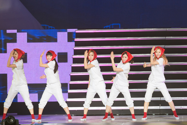 韓国出身の人気アーティストはもちろん、これからの活躍が期待されるルーキーや、日本からはBerryz工房が出演するなど、グローバル・ツアーの名にふさわしい豪華ラインナップとなった今回の公演。まずは現在大ヒットを記録している映画「アナと雪の女王」の“Let It Go”からスタート。2PMのニックンがグランドピアノを演奏し、ミナ(Girl's Day)、菅谷梨沙子(Berryz工房)、ジオ(MBLAQ)、P.O(Block.B)が次々とステージに登場すると、会場からは大きな歓声が。