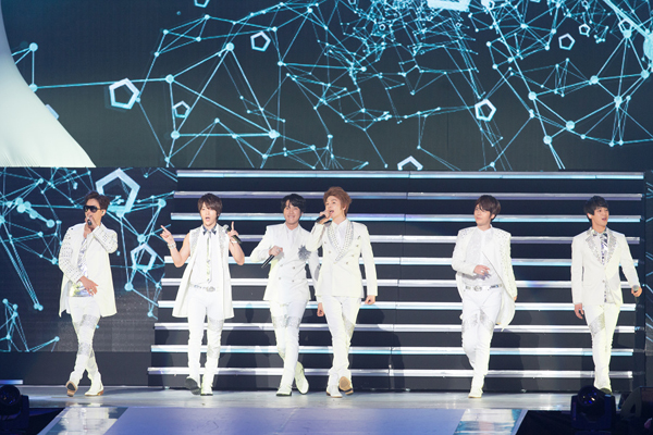 流ちょうな日本語のMCも印象的だった超新星は“恋しい日に”“Stupid Love”など4曲をパフォーマンス。横浜アリーナでの単独公演の経験もある彼らだけに、観客とのコミュニケーションもさすがの一言。日韓の代表曲が次々と披露される豪華なステージに、会場の盛り上がりもアツいものに。ソンミは、ソファを使ったセクシーなダンスも印象的だった“Full Moon”で会場を魅了し、Ledappleは春っぽく優しい楽曲&歌声で話題の新曲“Who are you?”で横浜アリーナを包み込みました。