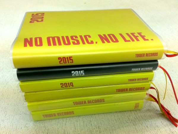 はい、これが9月18日に発売となる〈タワレコ手帳2015〉の表紙です。今年もスタッフが集まってミーティングを重ね、いろいろいろいろ検討した結果、こんなデザインとなりました~。