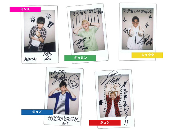 Youtube版「K-POP LOVERS!」のなかで伺った、〈マジ★○○じゃん〉な話と同じ表情を捉えたチェキをセットにして、抽選で1名の方にプレゼントいたします。ご希望の方は、下記の投稿アプリにTwitterまたはFacebookでログインをして頂き、どのメンバーの表情が一番いいかを投票してください。ご参加頂いた方のなかから抽選を行います。締め切りは、2015年5月24日(日)23:59まで! たくさんのご参加、お待ちしています(Twitterで参加された方が当選された場合は、Tower_KpopからDMをお送りいたします。必ずTower_Kpopをフォローしていただけますようお願いいたします)。