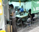 A SEED JAPAN新スタッフは明日のためにリサイクルの仕組を説明するリハーサルを行っています。実はボランティアのスタッフは学生の方が多いので、毎年代代わりや入れ替わりがあるのです。LIVE EARTHは今年のFESのスタートと言う事で、いいトレーニングにもなっているとの事。ブースにはいい緊張感が漂っています。