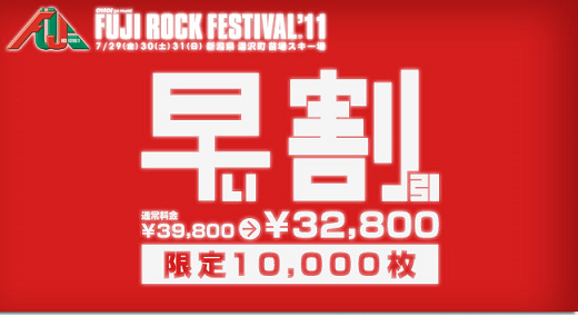 7月29日(金)30日(土)31日(日)の3日間、新潟県・苗場スキー場で開催されるFUJI ROCK FESTIVAL '11から、今年も『期間限定早い割引チケット』販売のお知らせ!