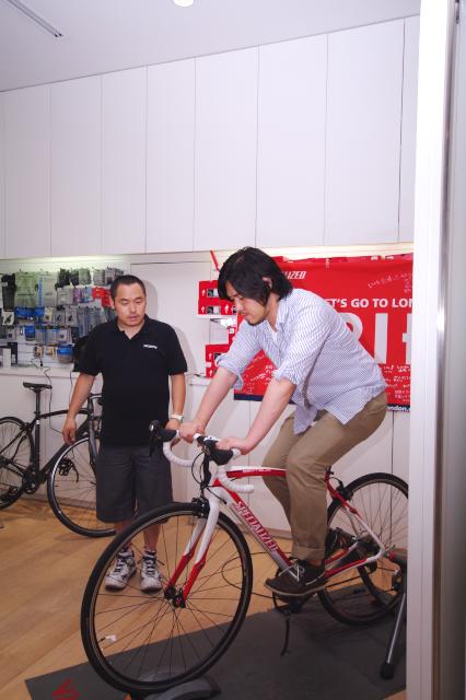 サドルやハンドルのポジションを武井さんと相談しながら決めていきます。