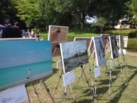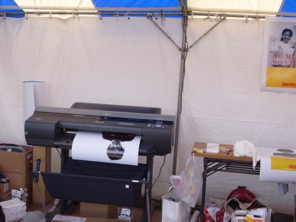 撮影した写真を大型プリンターで出力。GAMAROCKのロゴと「塩竈の未来のために!」のコメント。