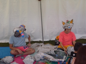 こちらは新聞紙を使ってモンスターの被りものを作るワークショップ。