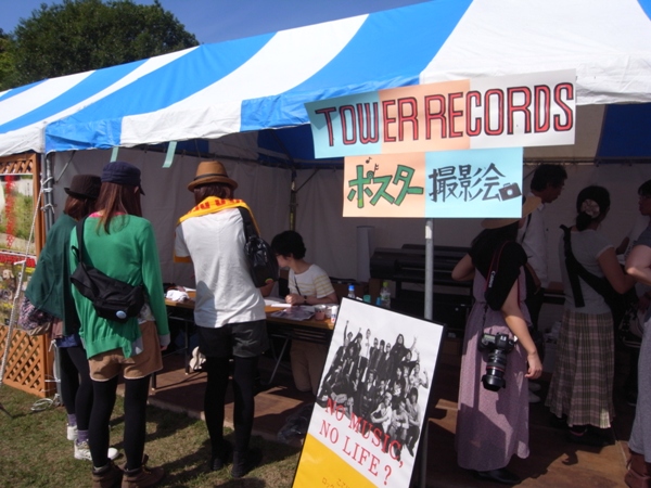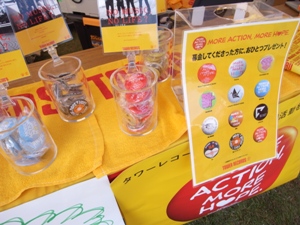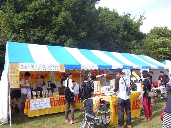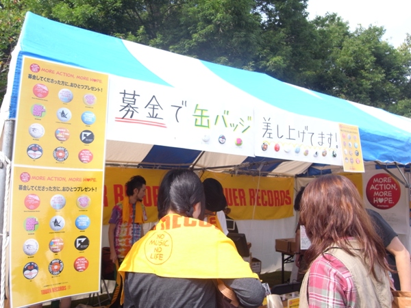 タワレコブースではCDやグッズ、NO MUSIC,NO LIFE.ポスターの写真集などを販売する即売と、タワーレコードによる復興支援活動「MORE ACTION,MORE HOPE.」で制作した缶バッジのサンプルを集めて、募金活動を行いました。