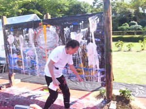 こちらは三脚に固定したカメラで的を狙うという射的ゲーム。