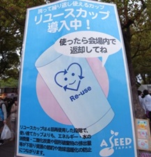 タワーレコードは国際青年環境NGO"A SEED JAPAN"と協力し、2012年は、Earth Day Tokyo 2012、 ap bank fes '12でリユースカップを導入して、紙コップなどの使用量の削減に努めました。